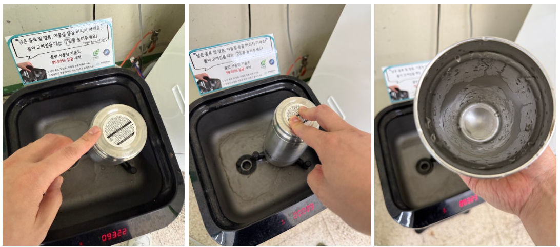 수업 전후나 회의 사이, 잠깐 들러 텀블러를 올리고 버튼만 누르면 끝. 대기 시간이 짧아 회전율이 좋고, 공용 공간 위생 기준도 자연스럽게 올라갑니다. 설치 본체가 슬림해서 복도나 휴게존 같은 협소한 공간에도 깔끔하게 자리 잡아요.